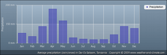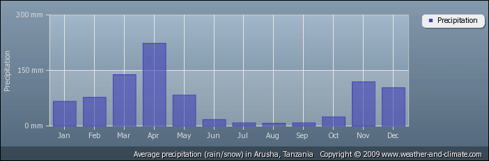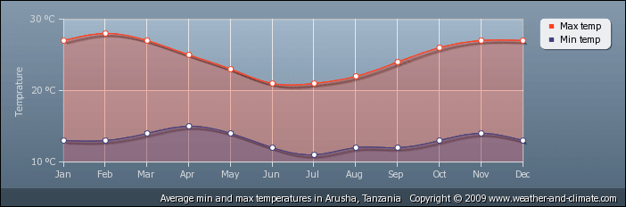 Tanzania ligt net ten zuiden van de evenaar en kent daarmee gedurende het hele jaar gelijkmatige temperaturen. April / mei is de periode van de grote regens en in november zijn er de korte regens. In de overige maanden hoopt men op regen in dit zeer droge land.